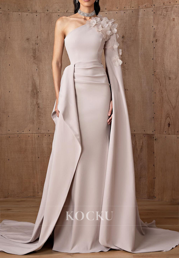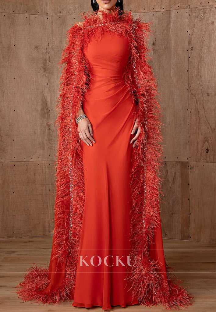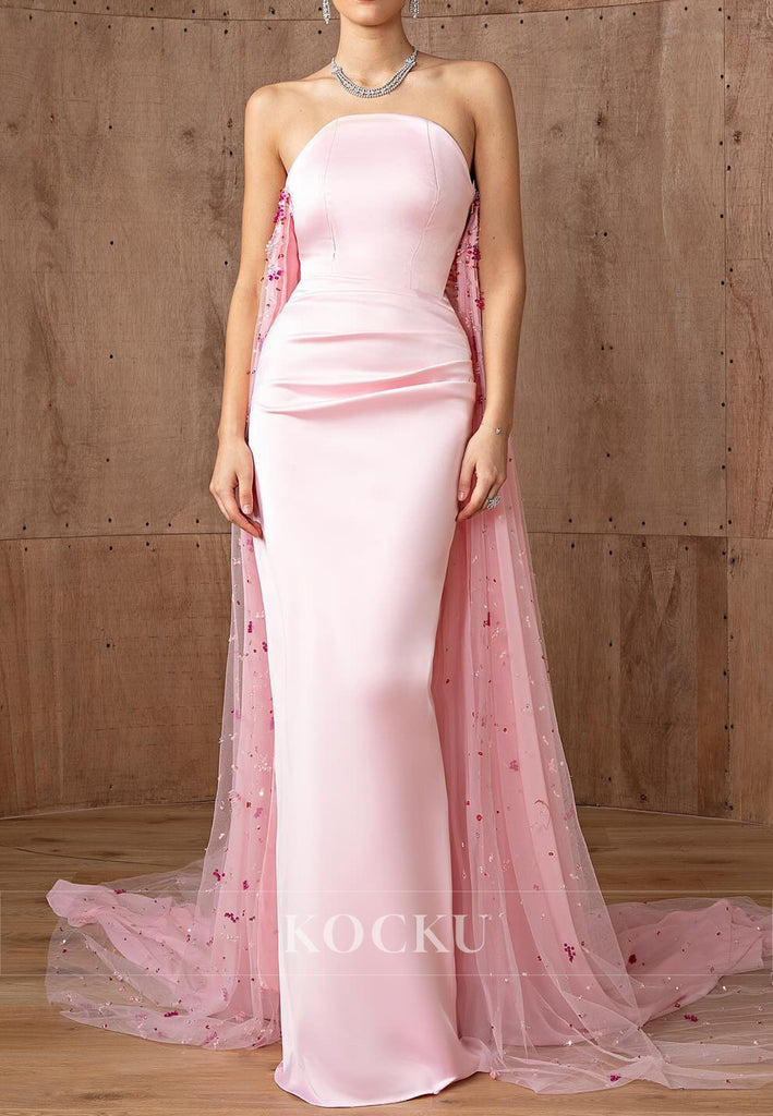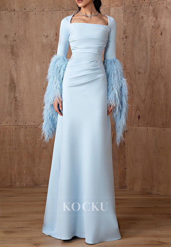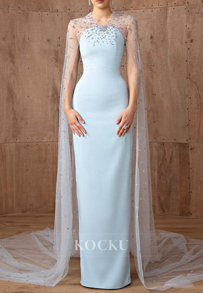 L1021 - V-Neck Sleeveless Ruched Satin A-Line Long Evening Gown With Slit