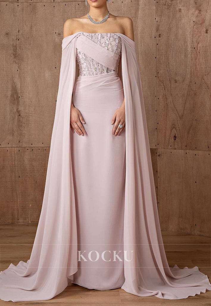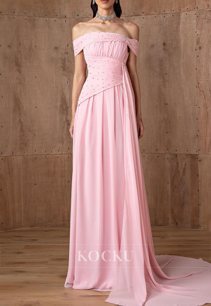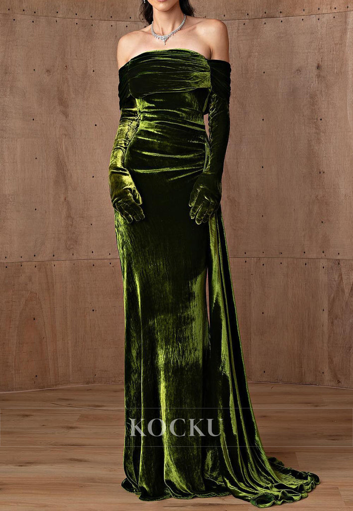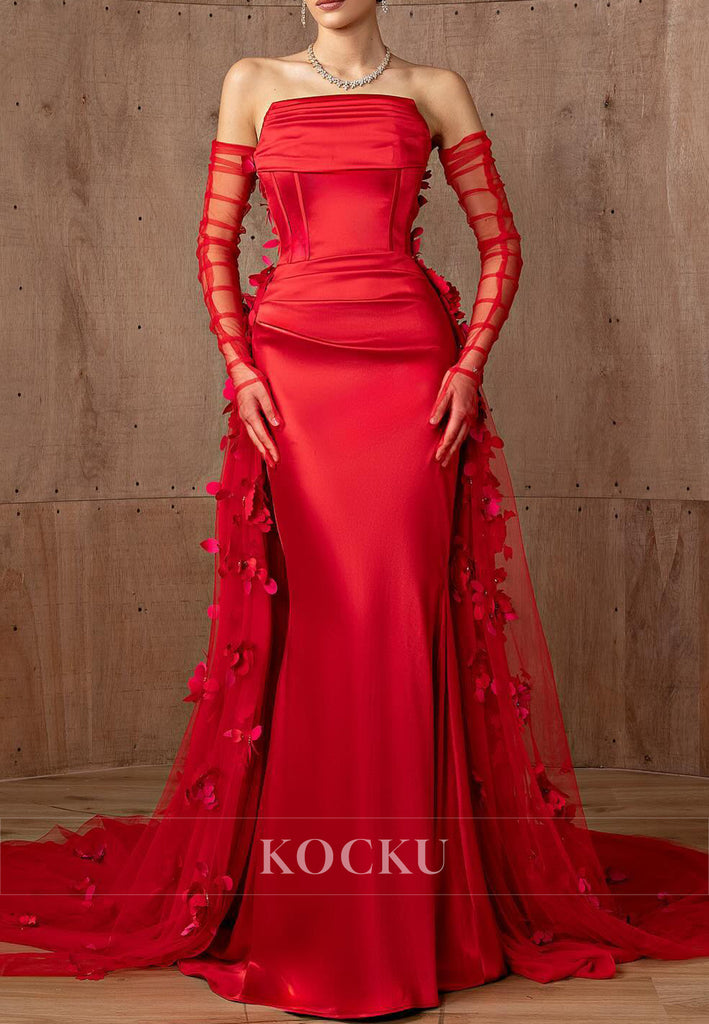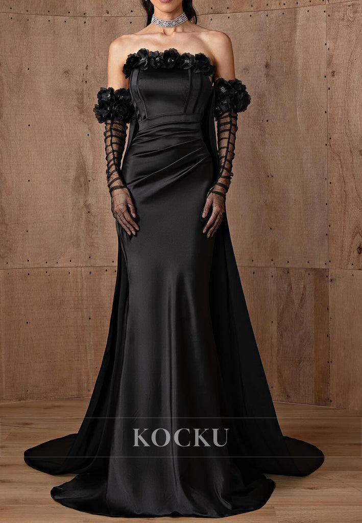 L1021 - V-Neck Sleeveless Ruched Satin A-Line Long Evening Gown With Slit