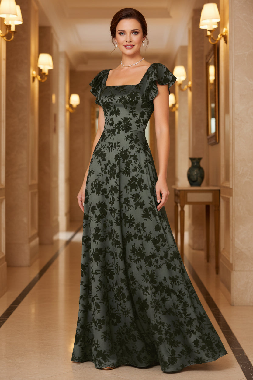 A-Line/Princess Square Collar Wedding Guest Dresses Short Sleeves Floor-Length with Ruffles - Custom Color is backordered and will ship as soon as it is back in stock.