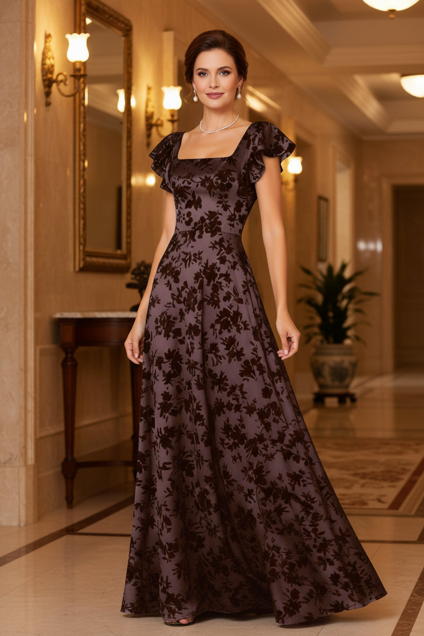 A-Line/Princess Square Collar Wedding Guest Dresses Short Sleeves Floor-Length with Ruffles