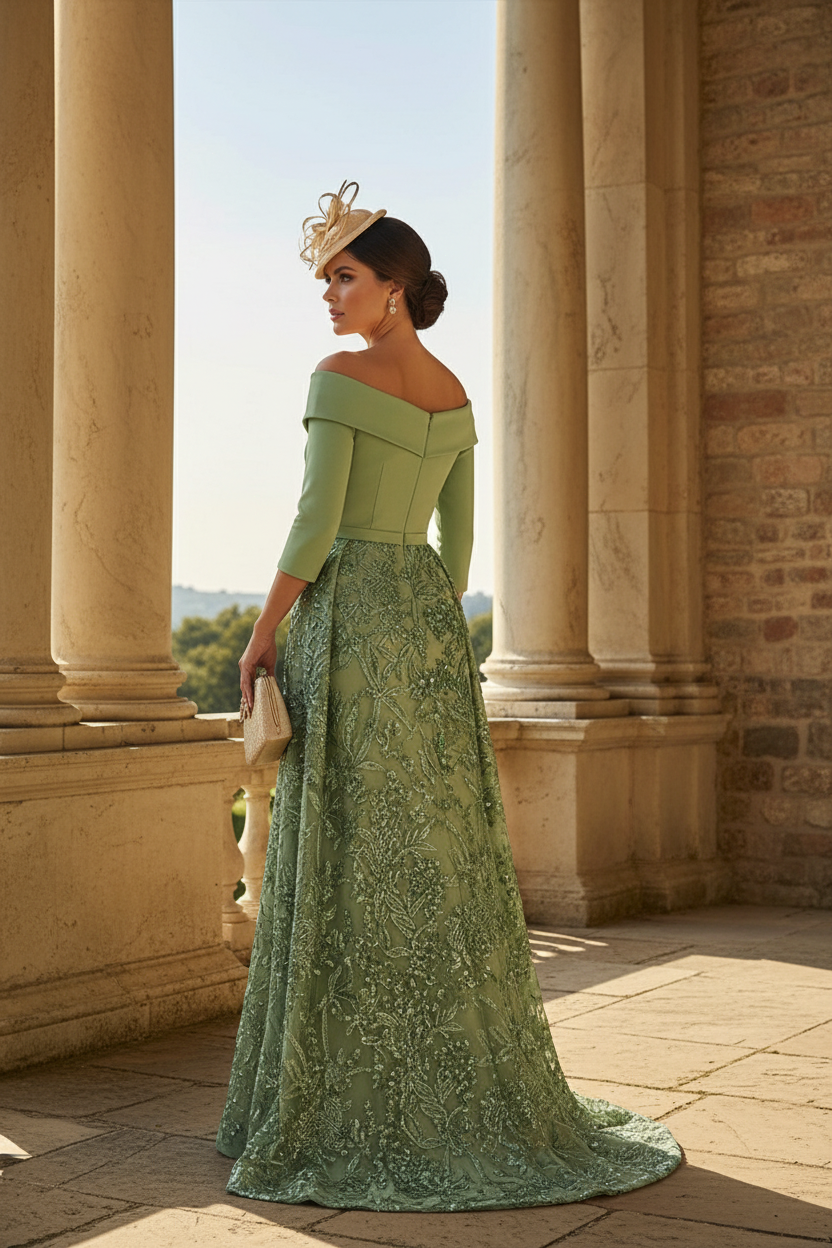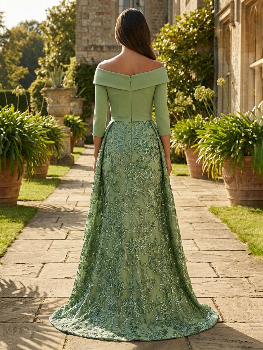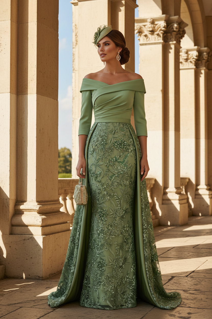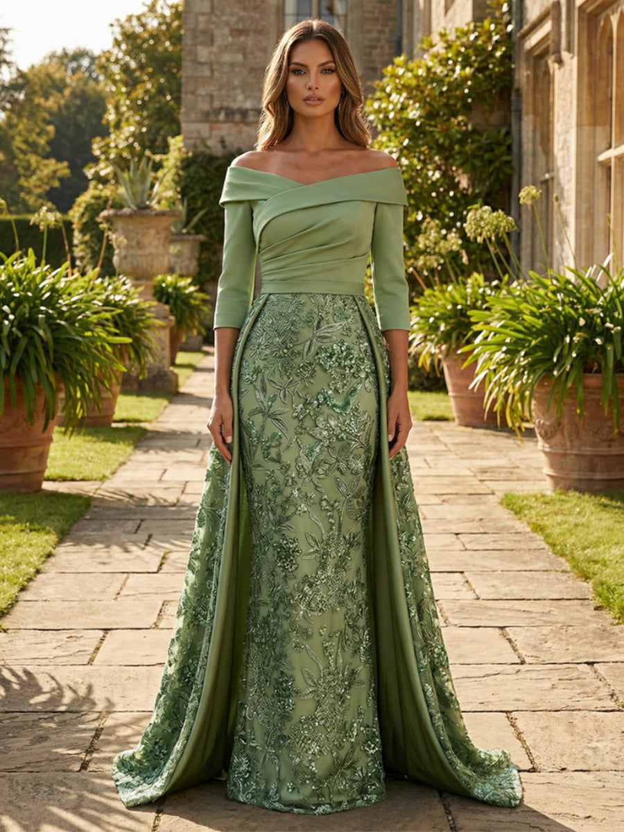 Off the Shoulder Embroidery Sheath Mother of the Bride Dresses - Dusty Sage is backordered and will ship as soon as it is back in stock.