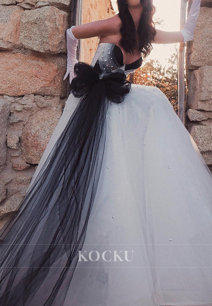 A-Line Strapless Sweetheart Beaded Bowknot Tulle Wedding Dresses