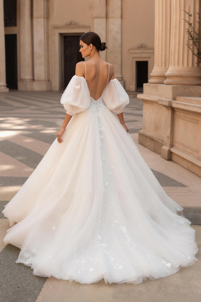 Ivory Appliqued A Line Sweep Train Wedding Dress - As Pic is backordered and will ship as soon as it is back in stock.