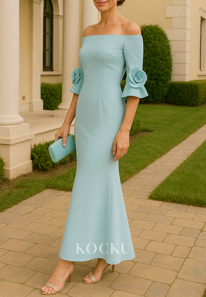 Bell Sleeves Off the Shoulder Flowers Trumpet Mother of Bride Dresses