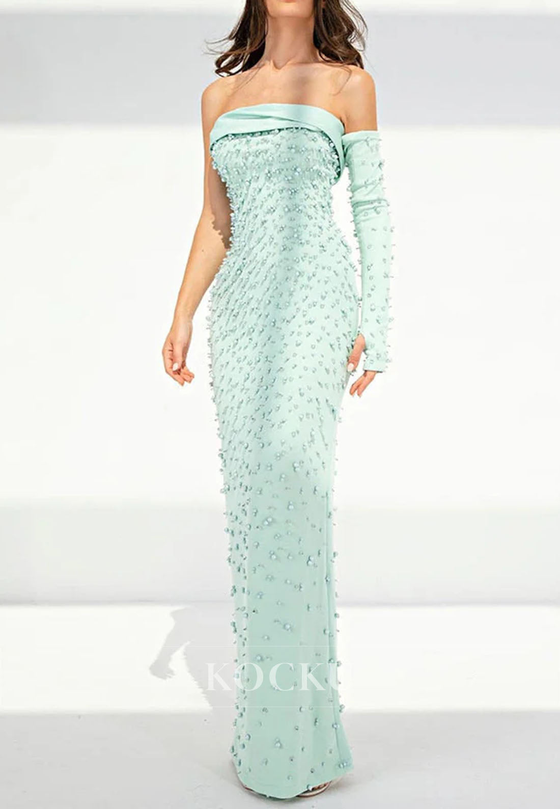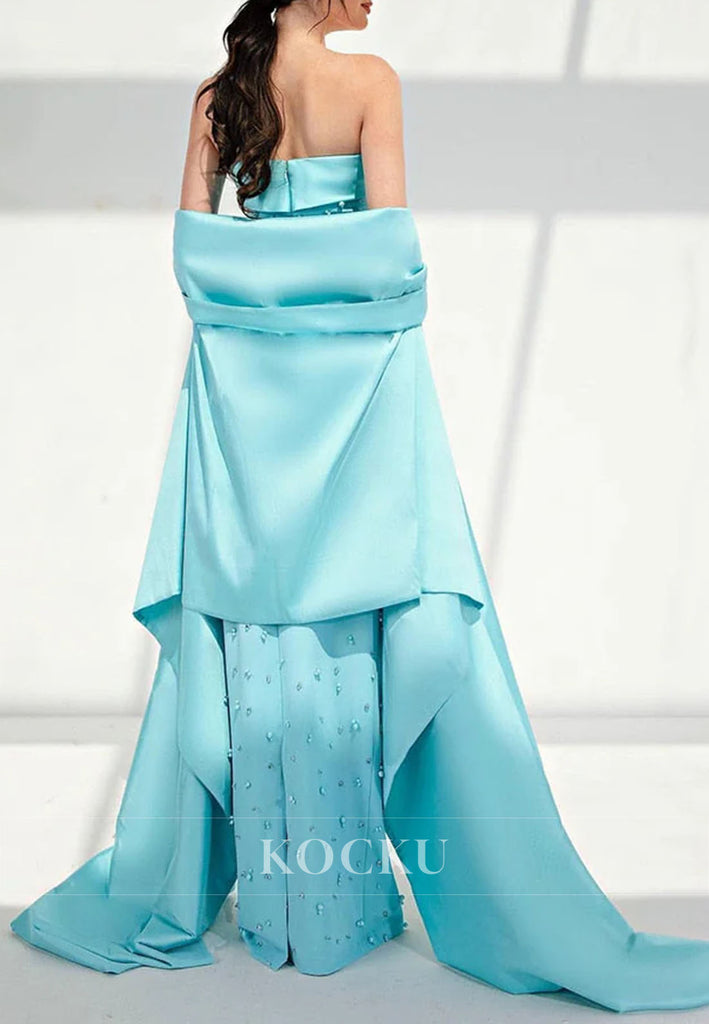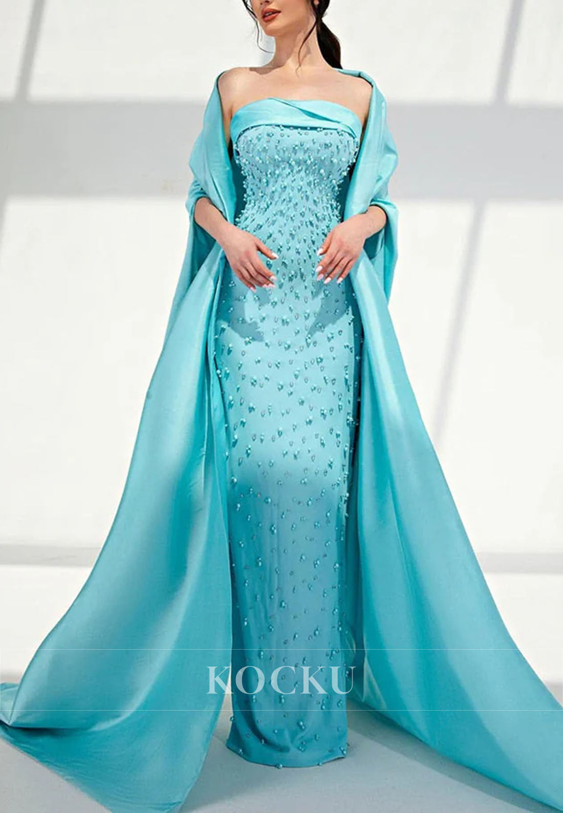 Sheath Full Beading Floor Length Evening Formal Gown with Cape
