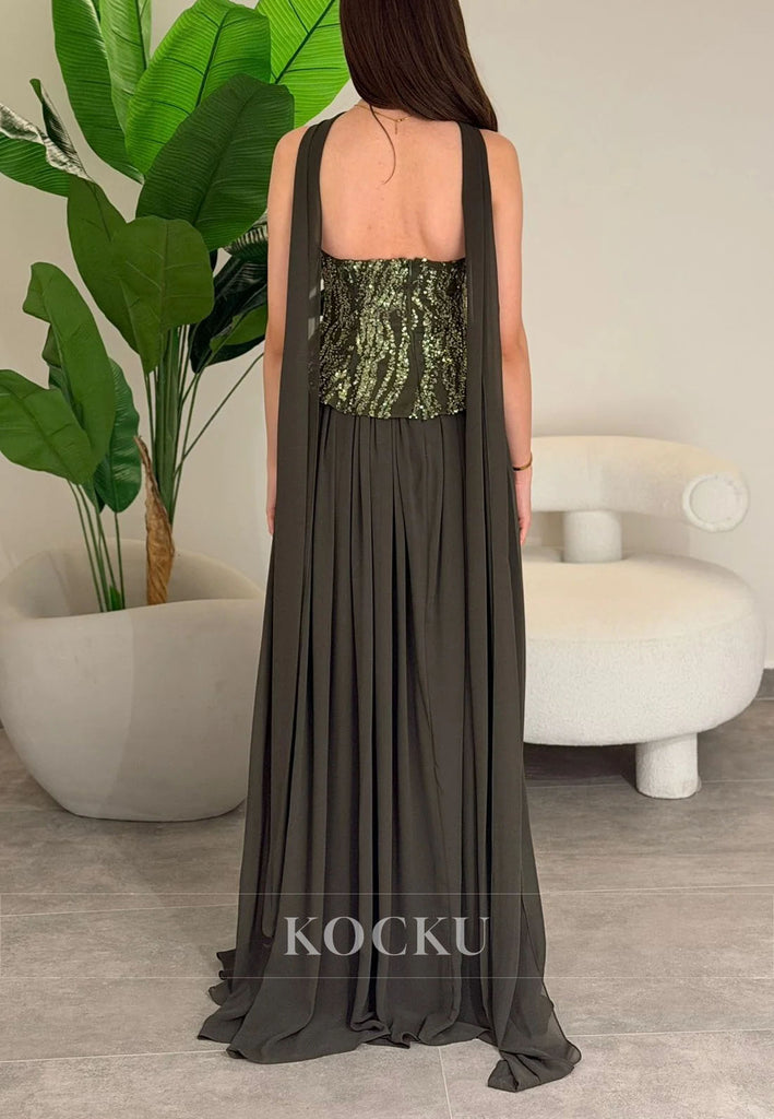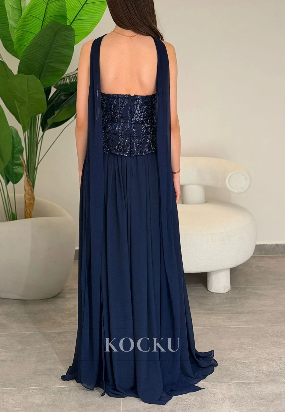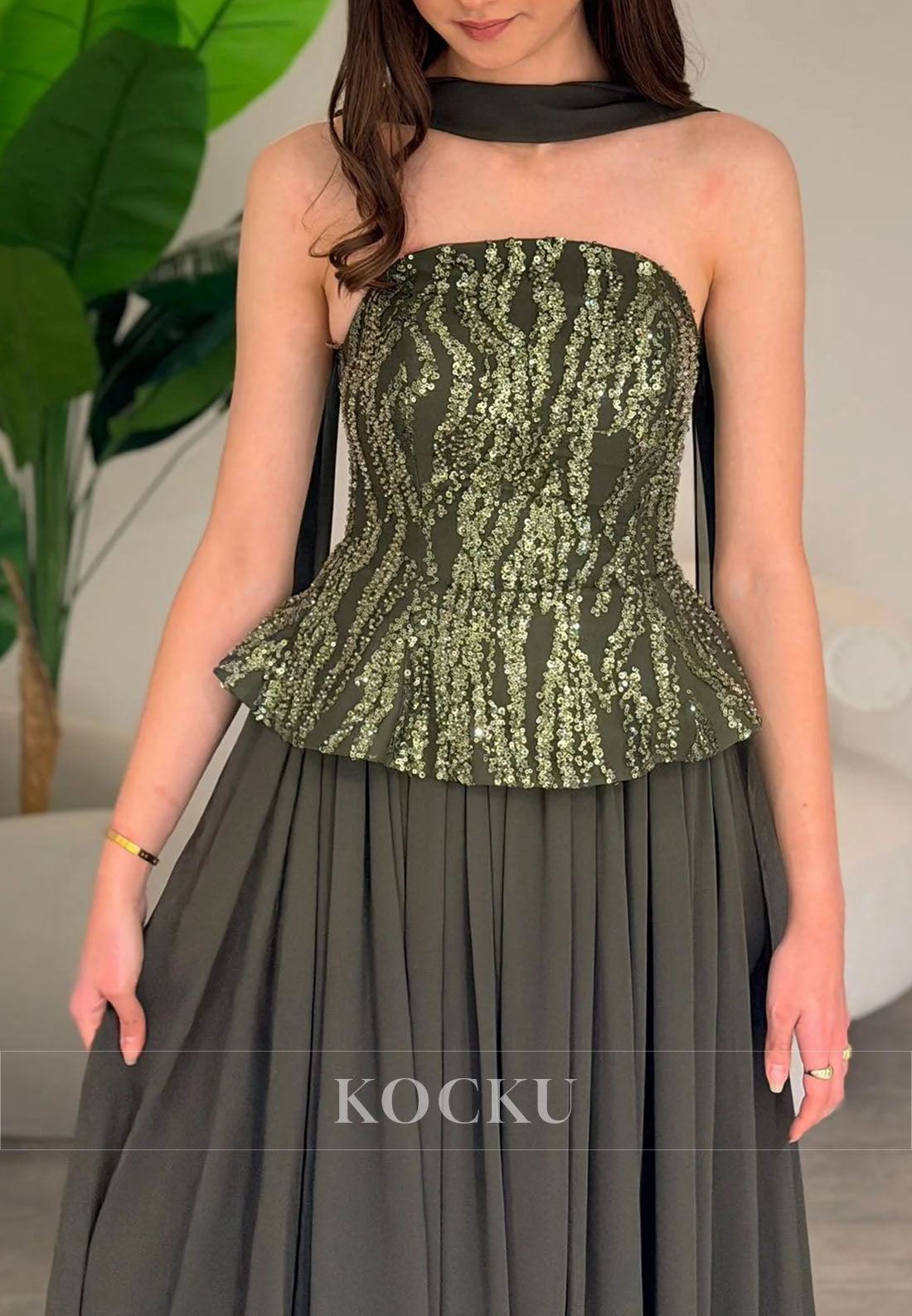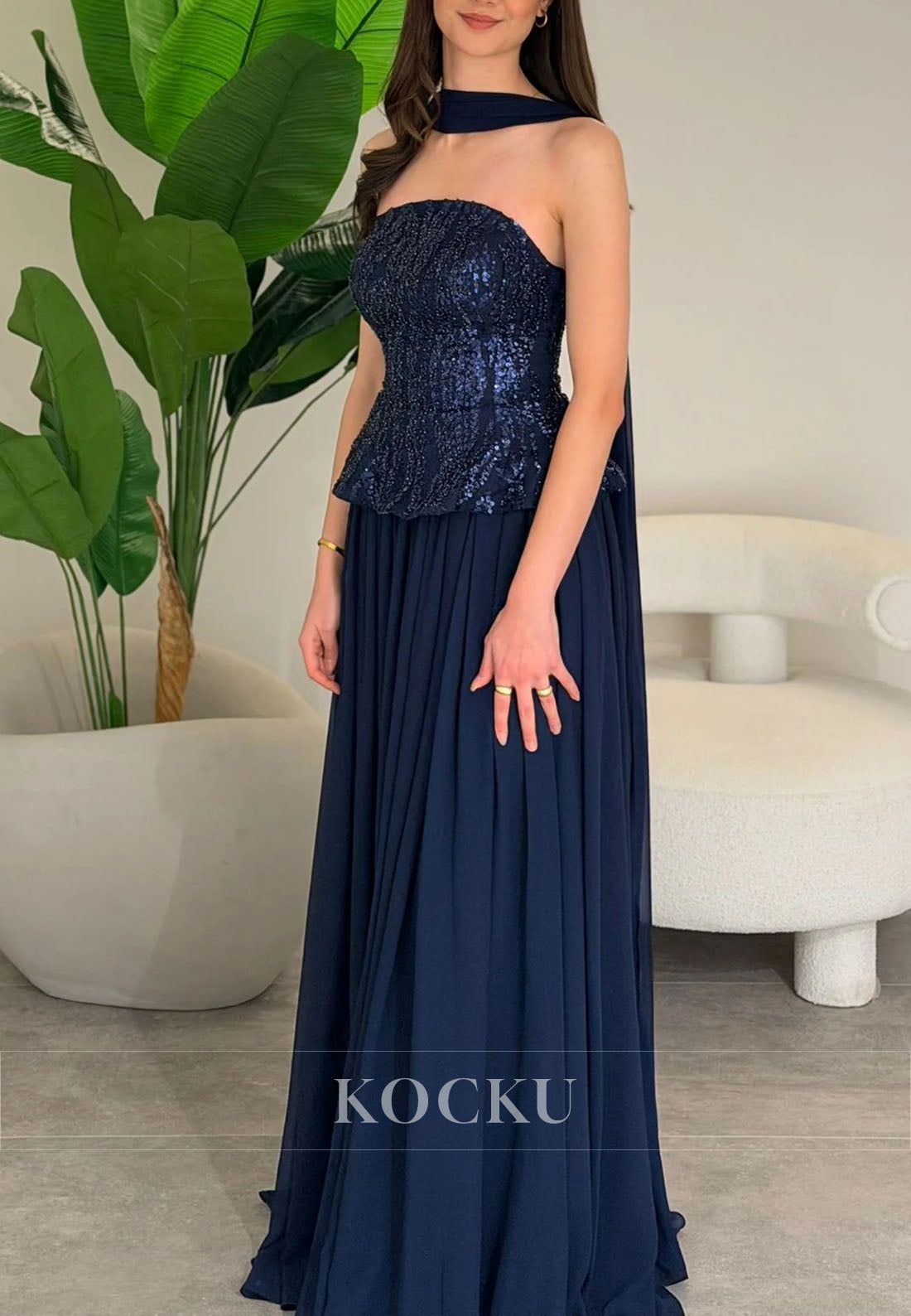 A-Line Tube Top Sleeveless Back Zipper Formal Evening Gown with Scarf