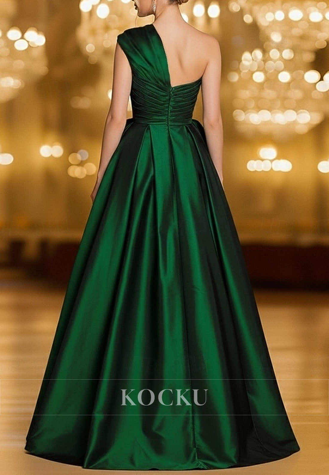 Stand out in this elegantly asymmetrical A-line gown, designed for the mother of the bride with contemporary sensibilities. The one-shoulder neckline creates a striking, fashion-forward silhouette that balances sophistication with modern flair, while the sleeveless cut showcases graceful shoulders and arms. The flowing A-line skirt provides flattering movement and comfort, while the side slit adds practical elegance and contemporary appeal. A charming bowknot detail elevates the design with refined embellishment and visual interest. Premium construction ensures impeccable fit and all-day confidence. This distinctive piece combines classic proportions with modern styling, delivering the poise and presence you deserve on this cherished celebration.