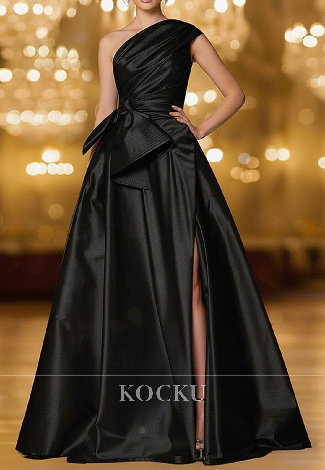 A-Line One Shoulder Sleeveless Side Slit Bowknot Evening Dress Mother of the Bride Dress