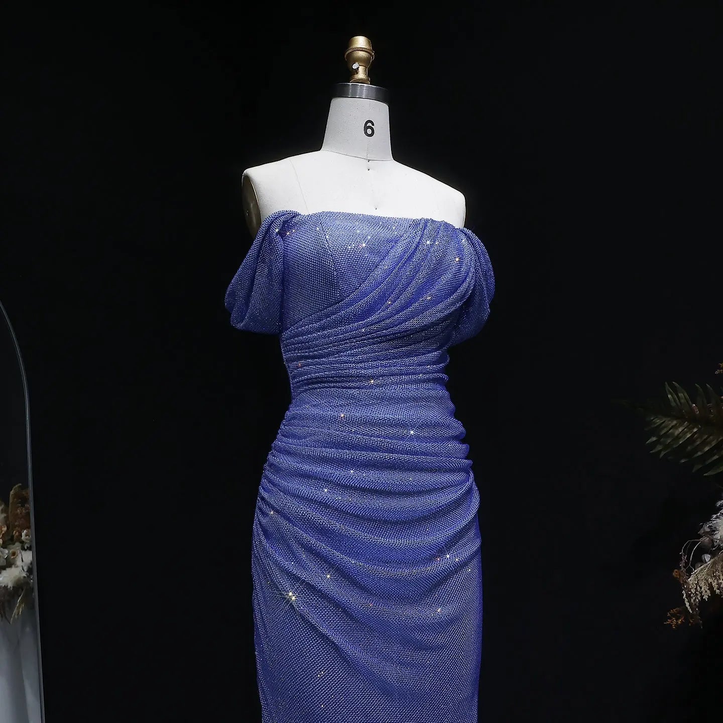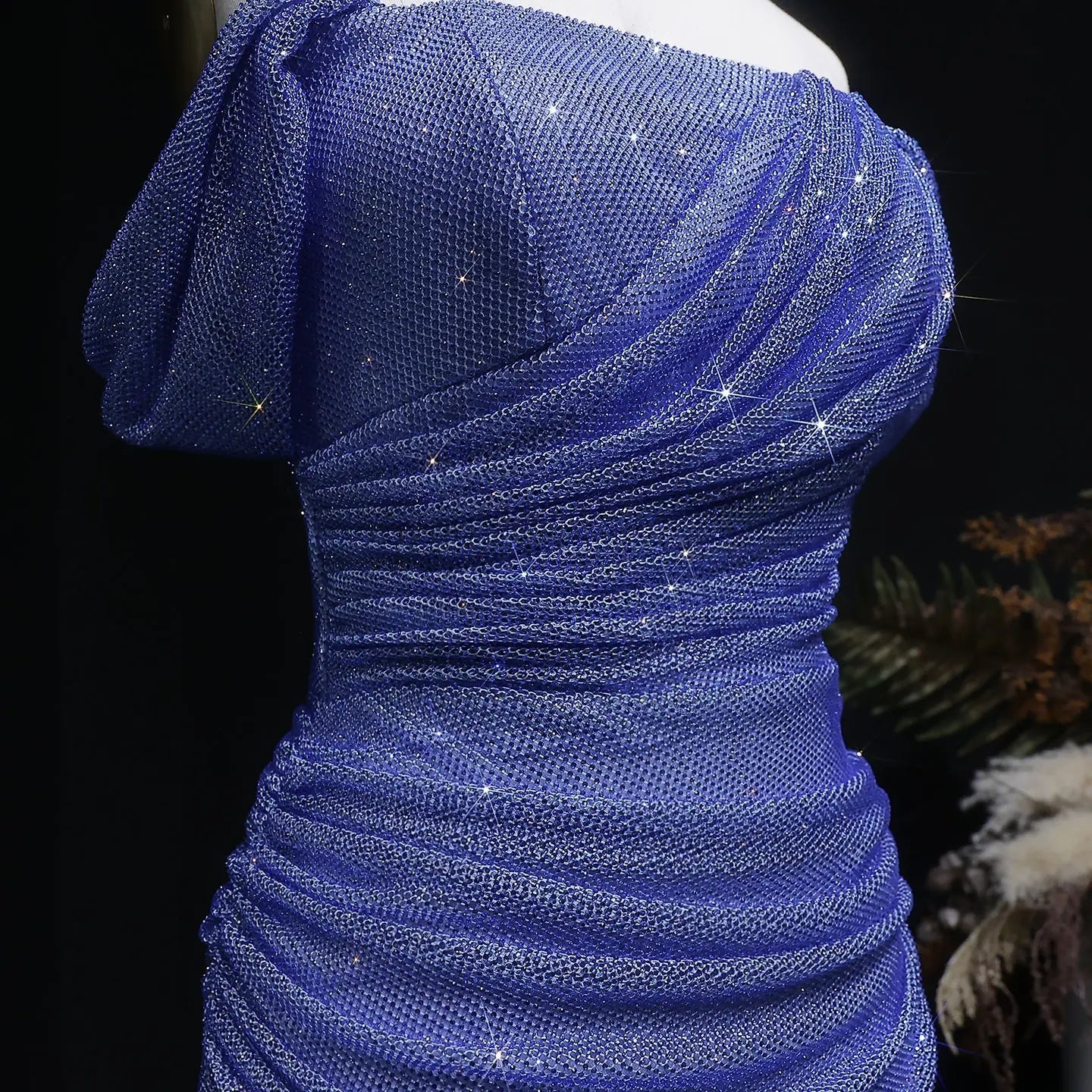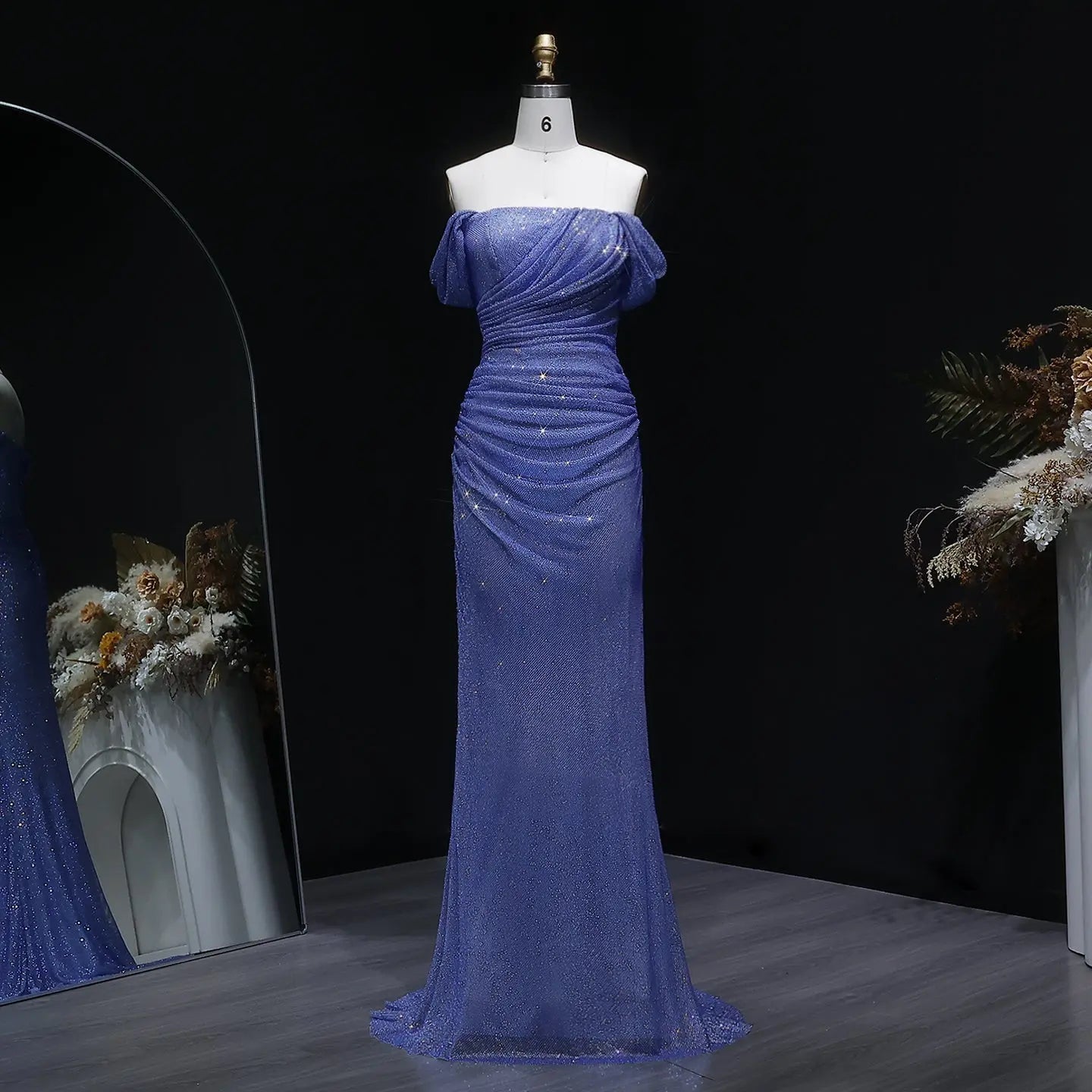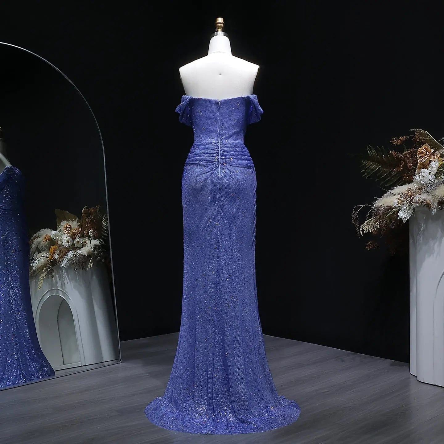 Elegant Blue Off-Shoulder Sequin Evening Dress