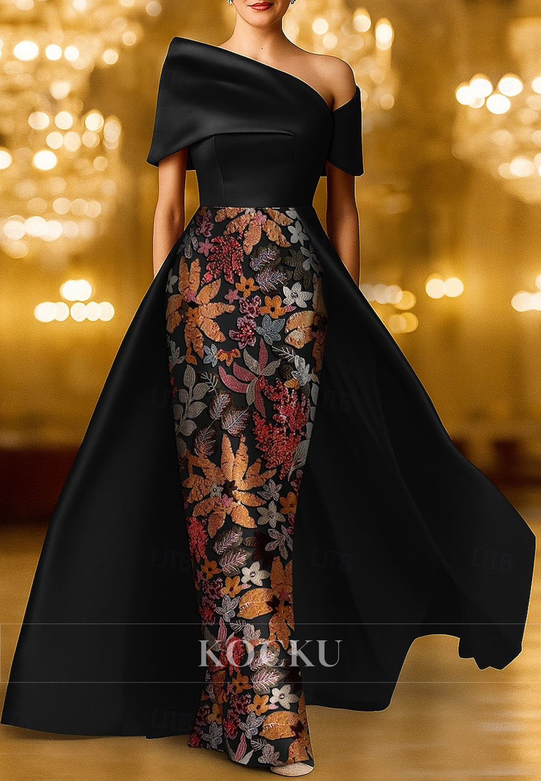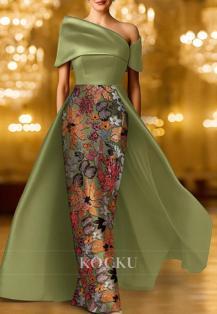 Sheath Floral Sequins One Shoulder Floor Length Mother of the Bride Dress