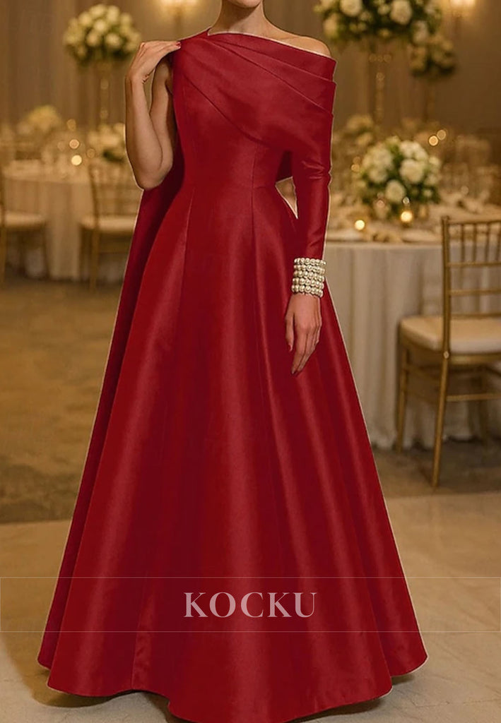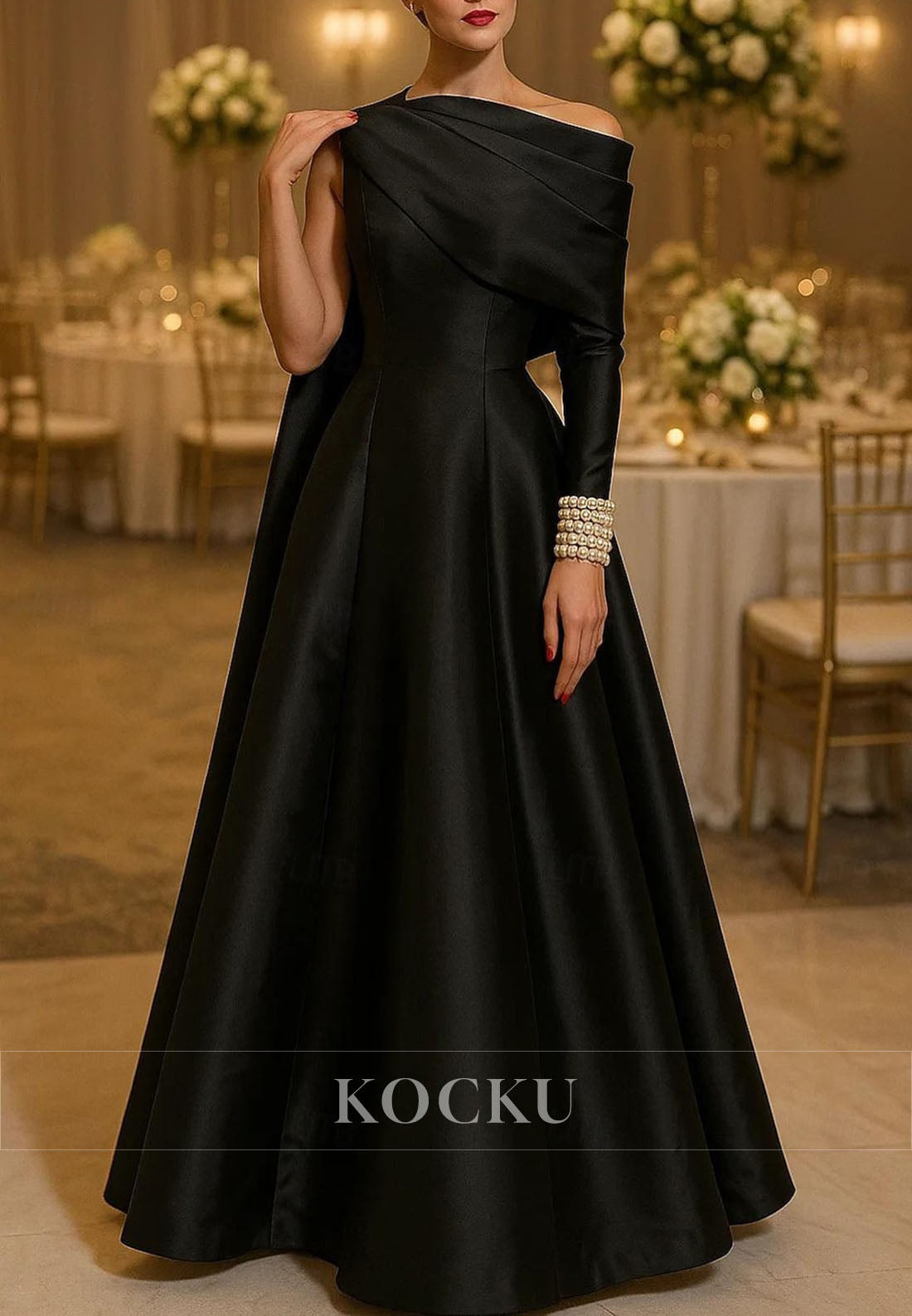 A-Line One Shoulder Ruched Satin Floor Length Evening Dress Mother of the Bride Dress
