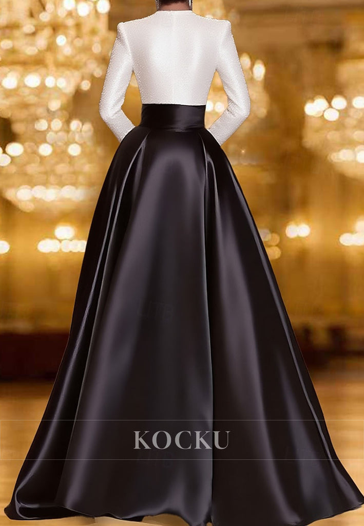 This timeless A-line gown captures the essence of refined elegance for the mother of the bride. The modest bateau neckline and full-length sleeves offer classic sophistication, while the gently flared A-line silhouette provides flattering movement and comfort. A sweeping train adds dramatic presence without sacrificing grace. Expertly proportioned and impeccably tailored, this dress delivers the understated luxury and composed beauty that defines a truly memorable formal appearance.