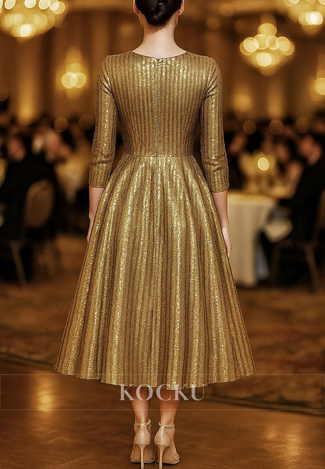 Gold Half Sleeves Bateau Neck Sequins A-Line Mother of the Bride Dress - Gold is backordered and will ship as soon as it is back in stock.