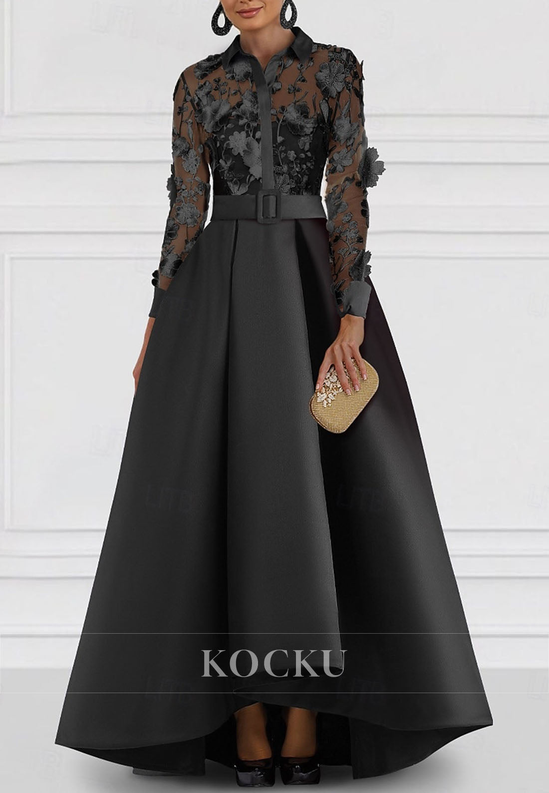 A-Line Floor Length Evening Gown Elegant Long Sleeve Shirt Collar Mother of the Bride Dress - Black is backordered and will ship as soon as it is back in stock.
