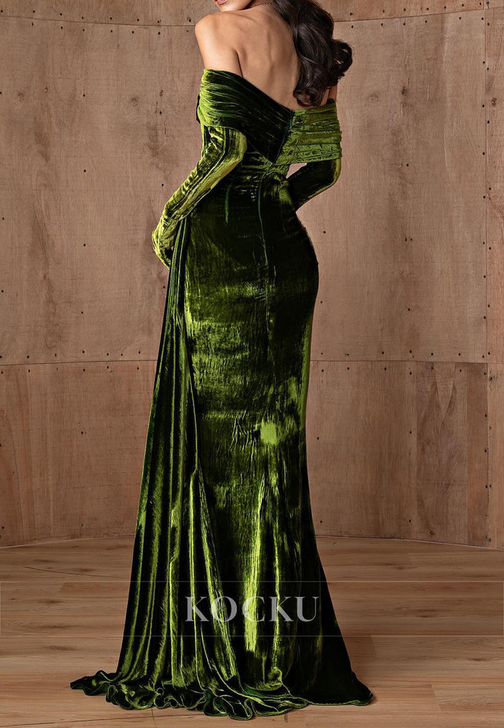 Long Sleeve Velvet Off the Shoulder Pleated Mermaid Prom Dresses