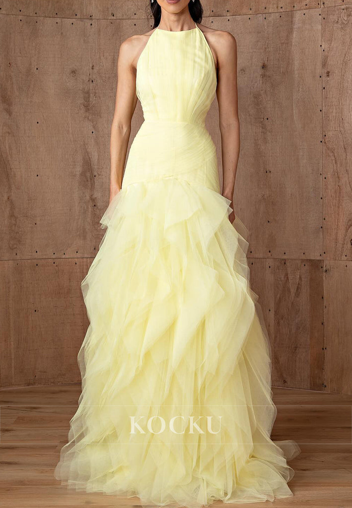 Chic & Modern Halter Sleeveless Tulle Sheath Long Prom Dresses