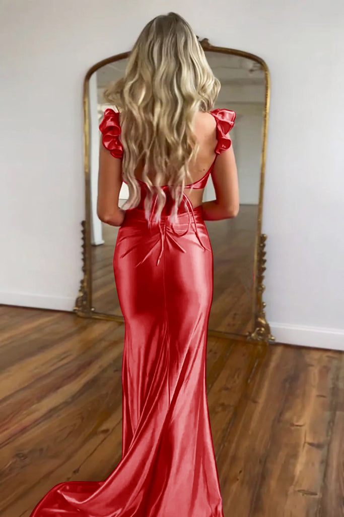 This hot pink satin mermaid prom dress features a flattering cutout waist design that accentuates your silhouette with elegance. The long, flowing skirt offers a dramatic finish, while the delicate floral detail adds a touch of sophistication. Ideal for special occasions, the smooth satin fabric ensures a comfortable and polished look throughout the evening.