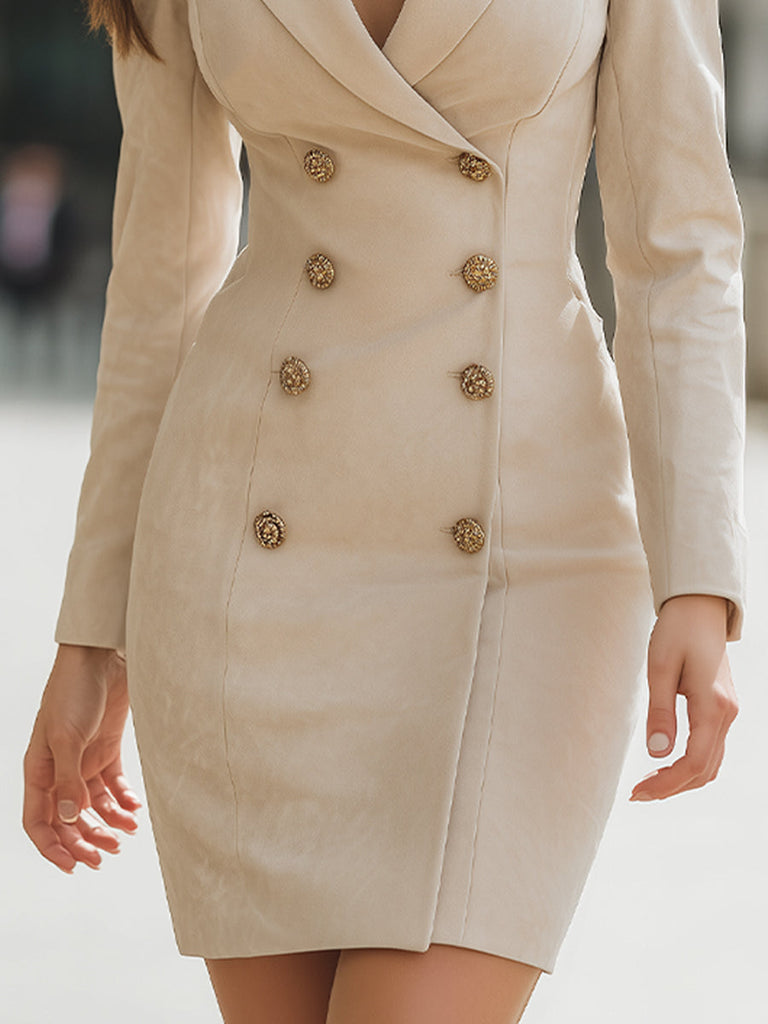 Elegant Double-Breasted Faux Suede Mini Dress With Gold-Tone Buttons