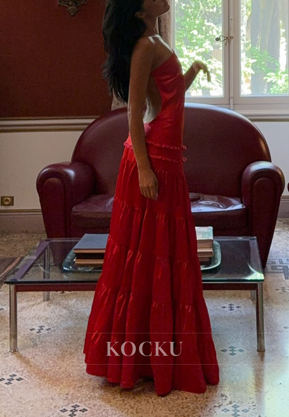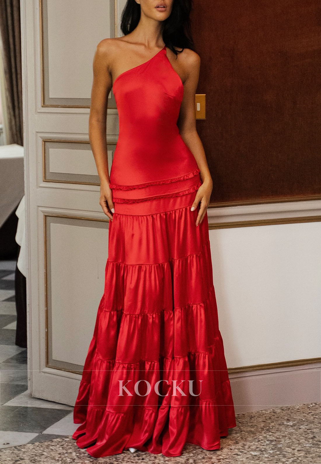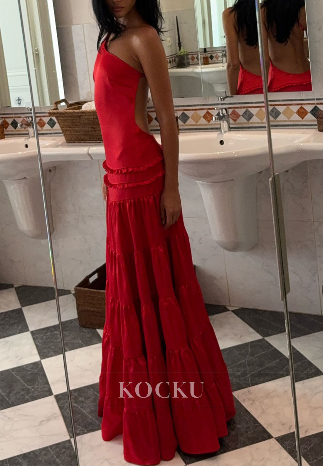One Shoulder Sleeveless Backless A-Line Prom Dress - Red ist auf Lager und wird versandt, sobald es wieder verfügbar ist