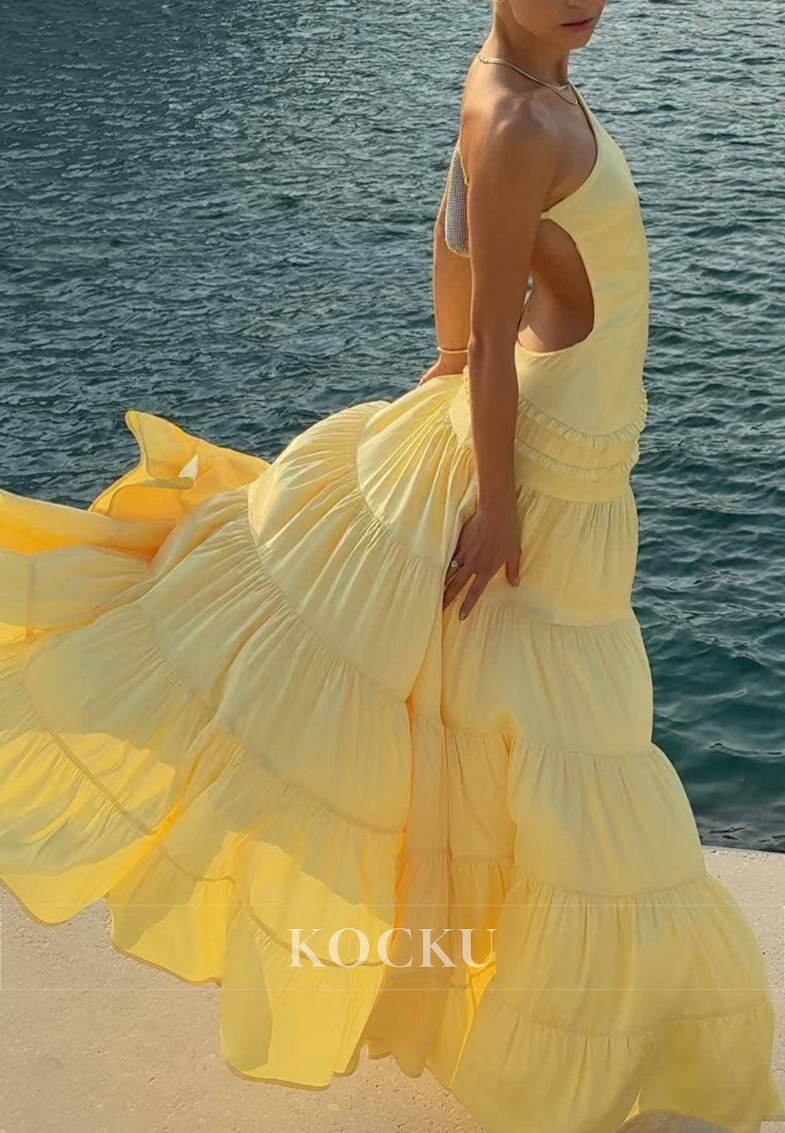 This one-shoulder A-line prom dress delivers modern sophistication with daring elegance. The asymmetrical neckline creates visual interest and a contemporary silhouette, while the sleeveless design offers freedom of movement. The backless cut showcases confidence and style, making a bold statement at any formal event. The flowing A-line skirt provides flattering volume and graceful movement, balancing the dress's more daring elements with timeless proportion. Perfect for prom, galas, or special occasions where you want to blend classic femininity with avant-garde flair. An excellent choice for those seeking a dress that commands attention through refined, architectural design.