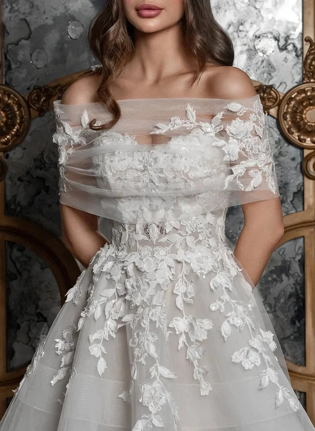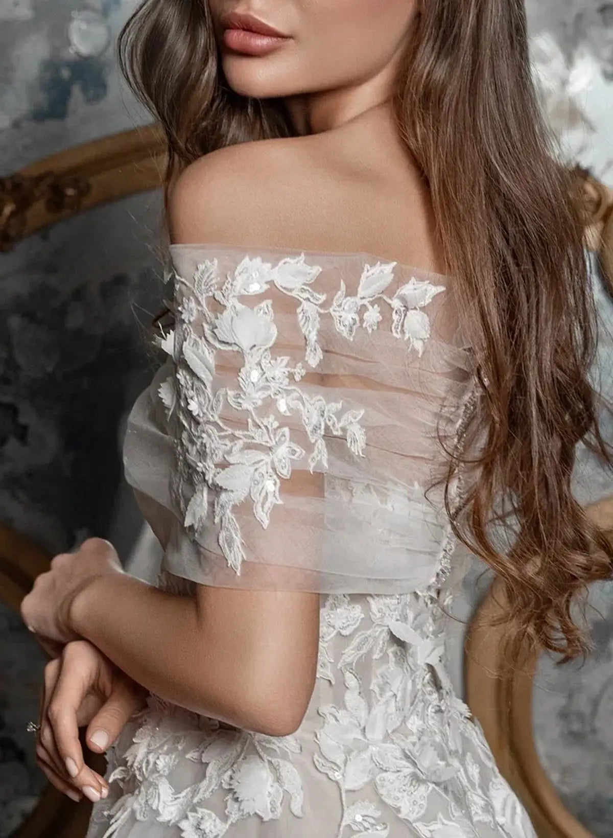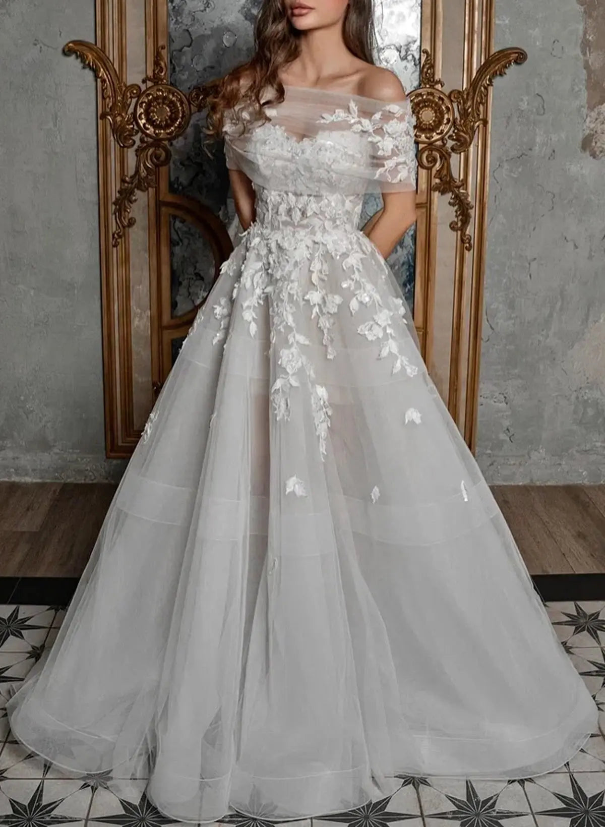 Timeless elegance meets modern versatility in this stunning sleeveless wedding dress. The classic A-line silhouette flatters every figure, while delicate lace and tulle create an ethereal, romantic aesthetic. The detachable neckline allows you to customize your look—wear it as designed or remove it for a different style throughout your celebration. A graceful sweep train adds drama and sophistication as you walk down the aisle. Perfect for the bride who wants both tradition and flexibility on her special day.