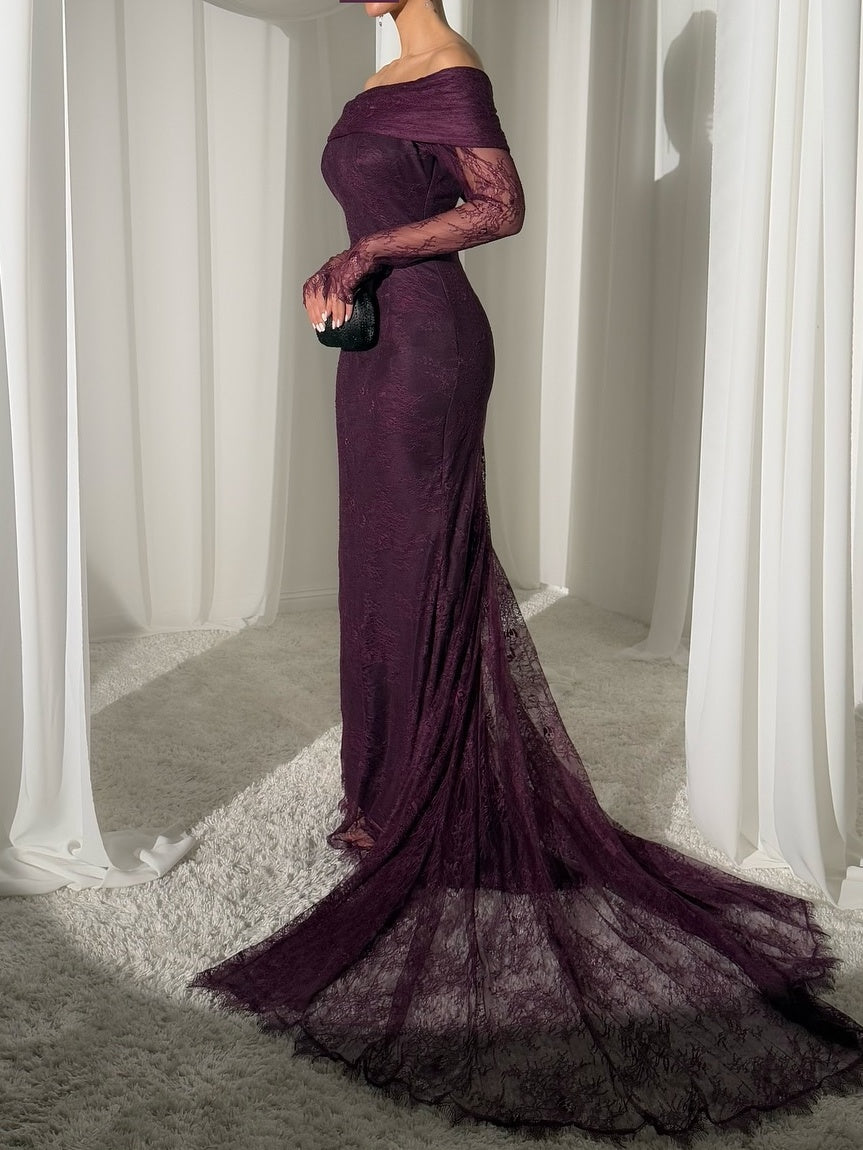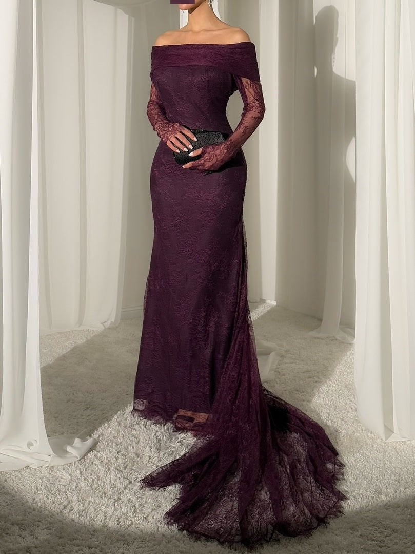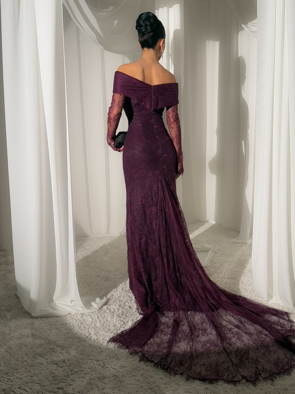 Elegant Off-Shoulder Lace Floor-Length Dress - Purple ist auf Lager und wird versandt, sobald es wieder verfügbar ist