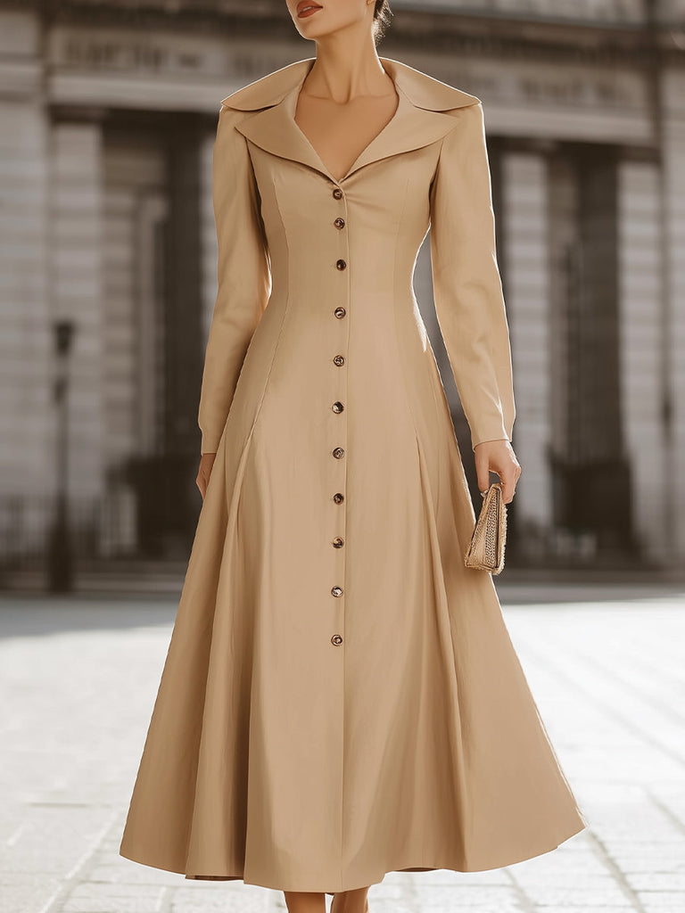 Vintage-Inspired A-Line Button-Down Midi Dress