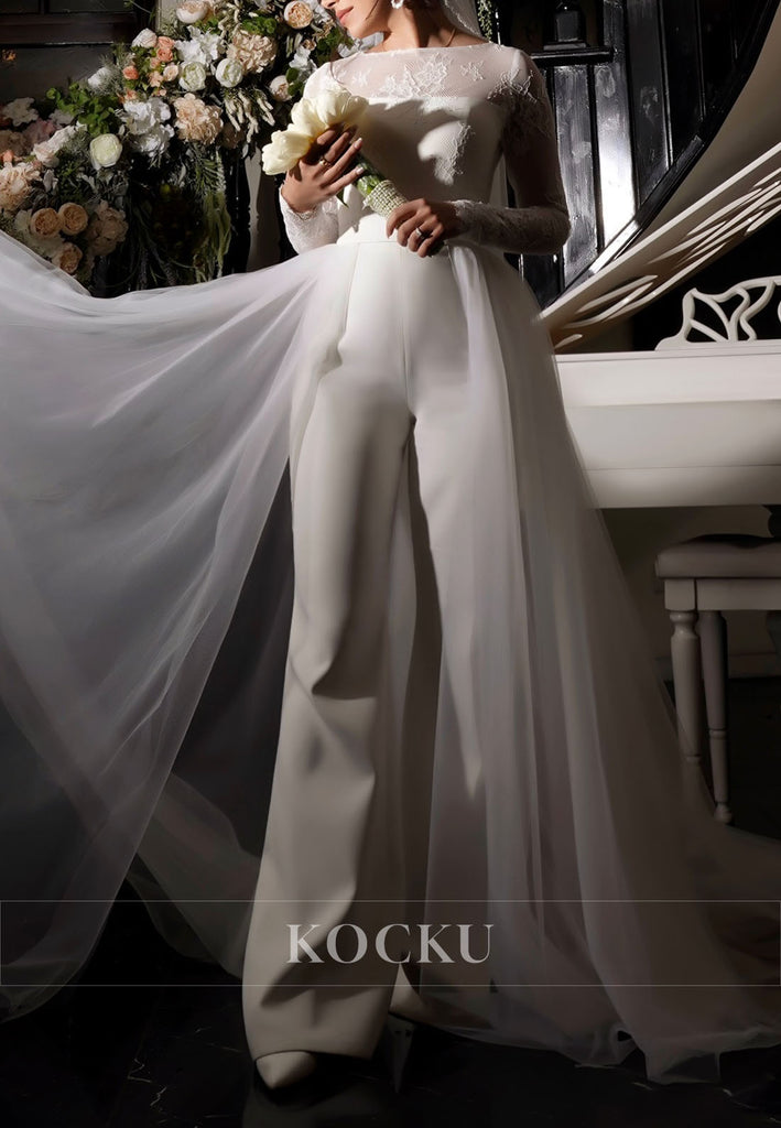 Jump Suit Bateau Neck Long Sleeves Back Zipper Wedding Dress