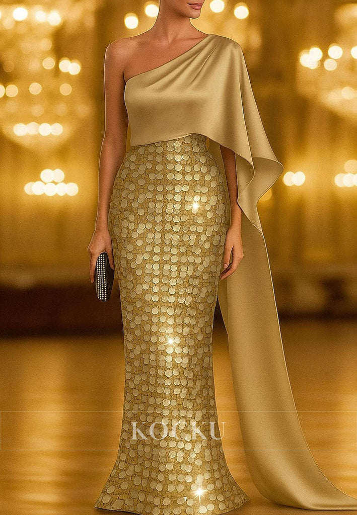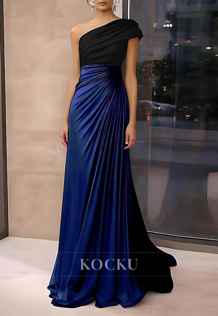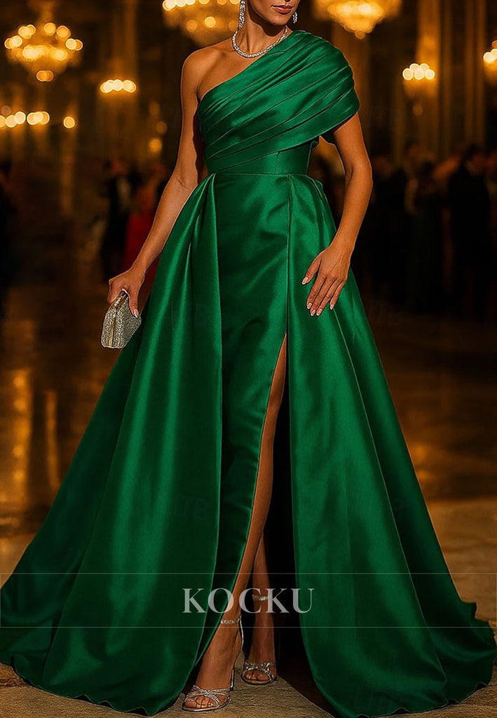 Sheath One Shoulder Side Slit Satin Evening Gown Mother of the Bride Dress