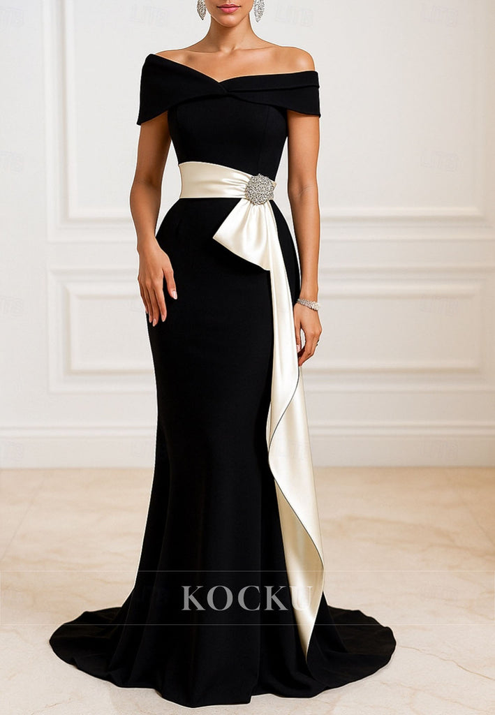 Mermaid Off Shoulder Sweep Train Evening Dress Mother of the Bride Dress