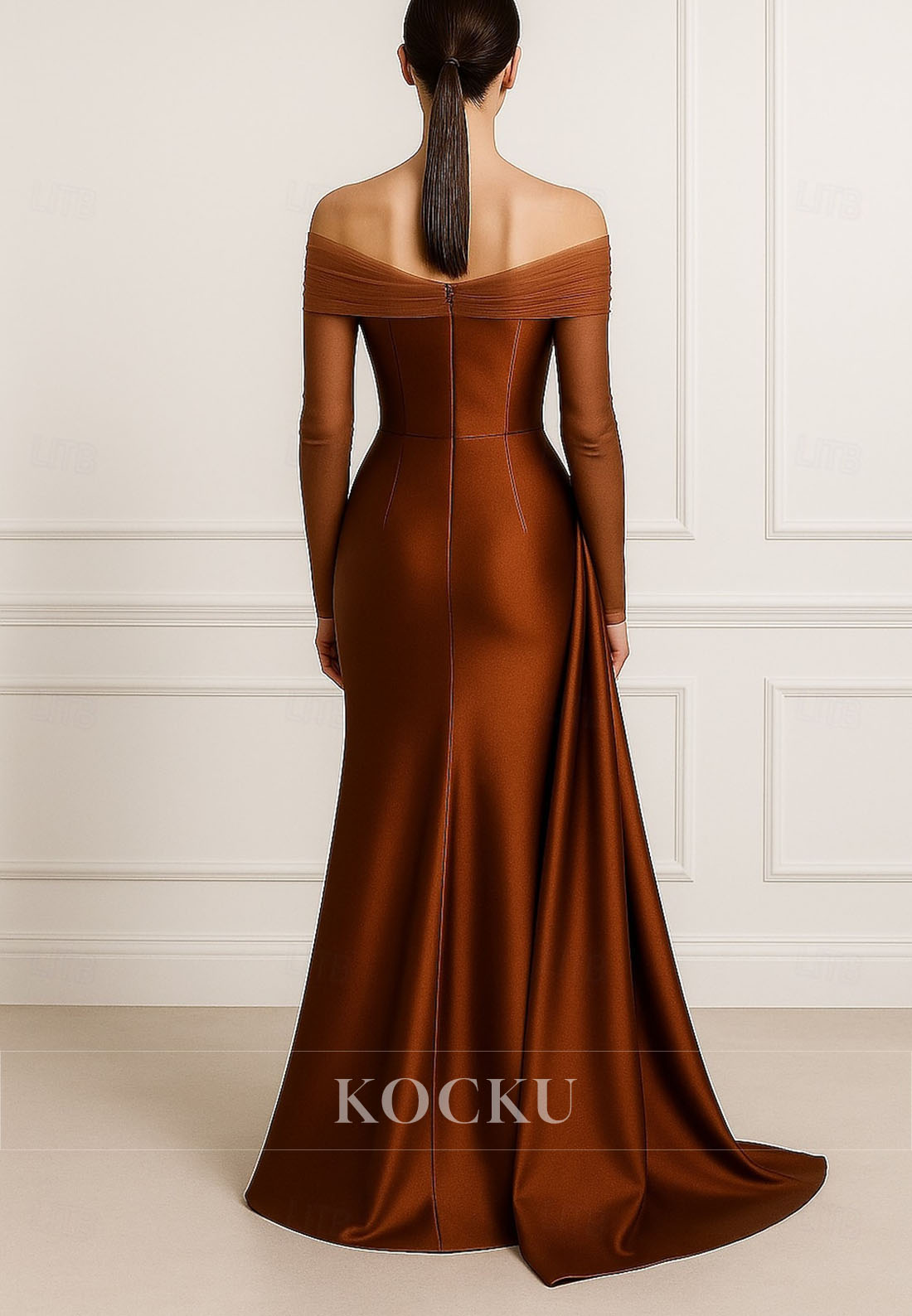 Off Shoulder Long Sleeves Simple Mermaid Back Zipper Mother of the Bride Dress Evening Gown - Brown est en rupture de stock et sera envoyé dès qu'il sera disponible