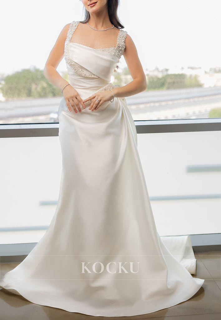 Classic & Timeless Straps Square Mermaid Satin Wedding Dress