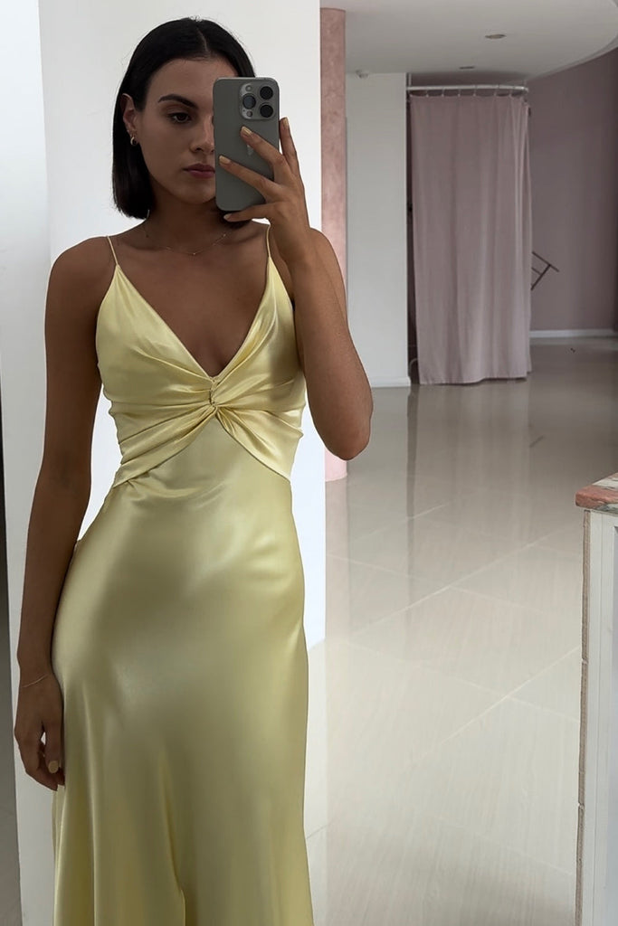 Chic A Line Spaghetti Straps Yellow Long Party Dress with Split Front - Yellow está em espera e será enviado assim que estiver de volta em estoque