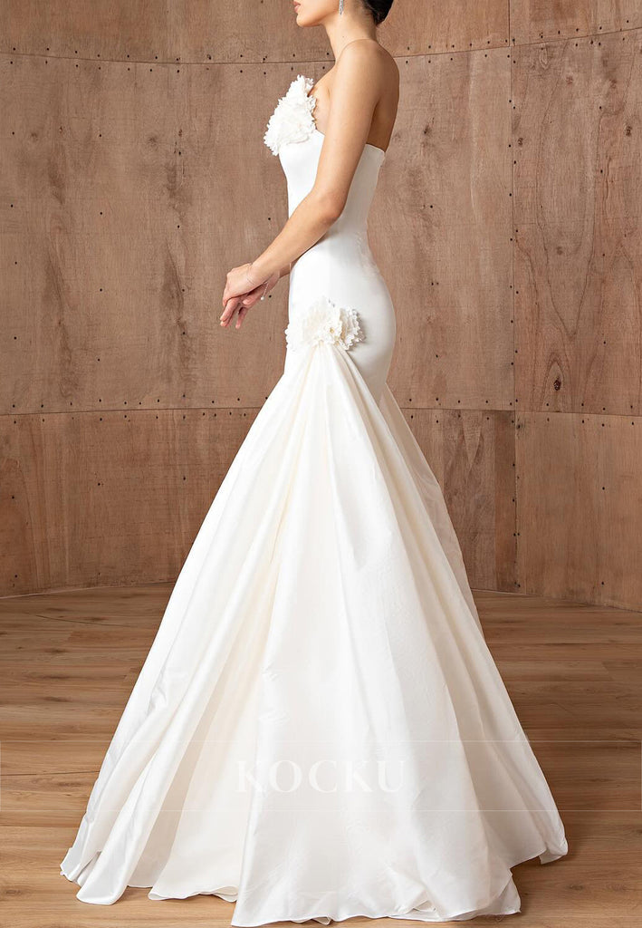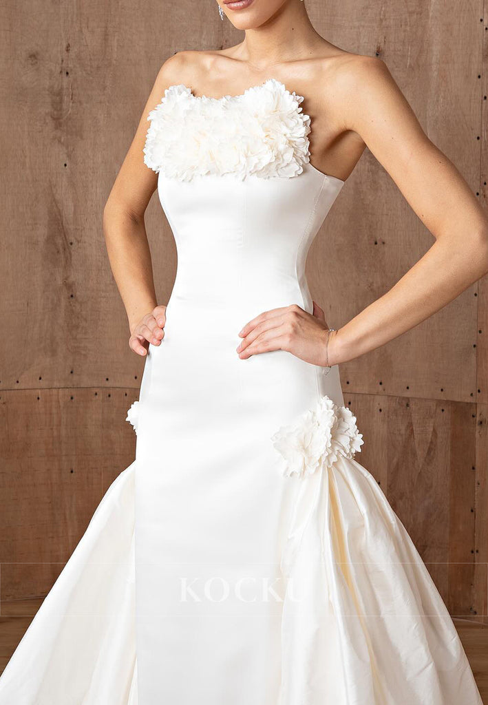 Elegant & Luxurious Strapless Floral Embossed Mermaid Prom Dresses