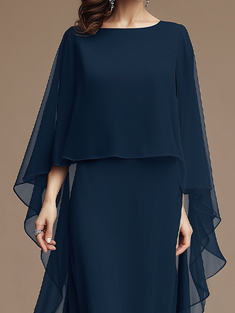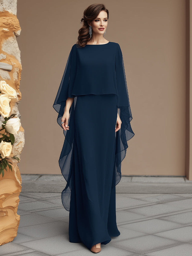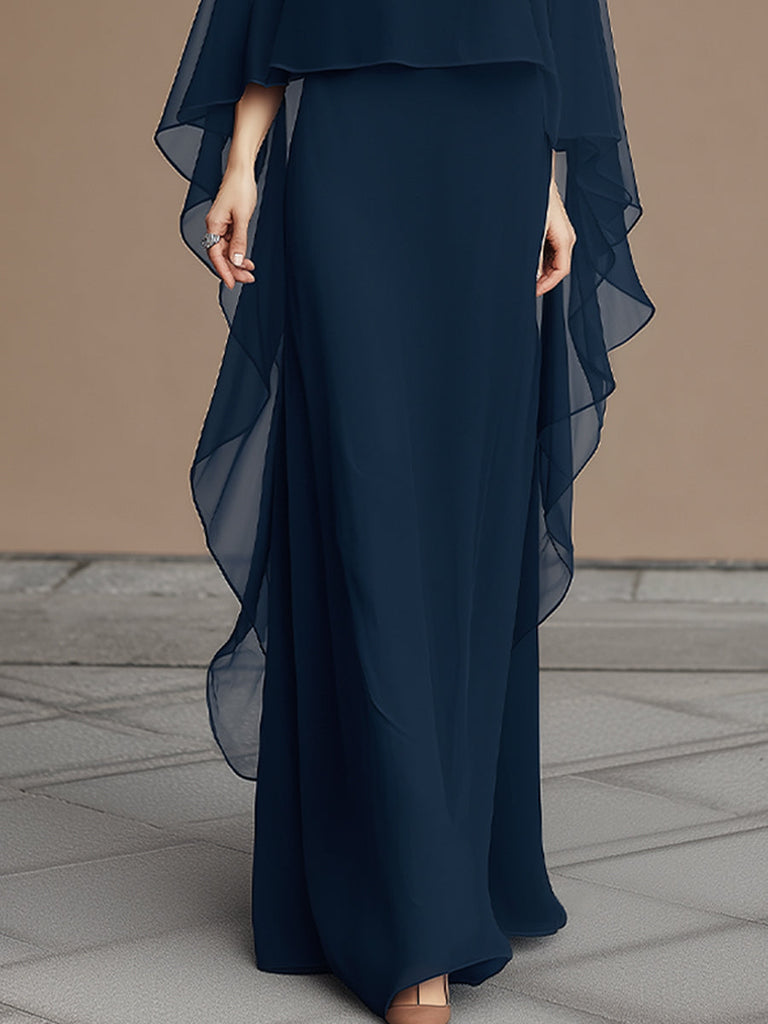 Elegant Chiffon Cape Sleeve Gown - Navy Blue está em espera e será enviado assim que estiver de volta em estoque