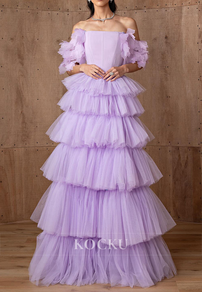 Classic & Timeless Lilac A-Line Strapless Pleated Tiered Prom Dresses