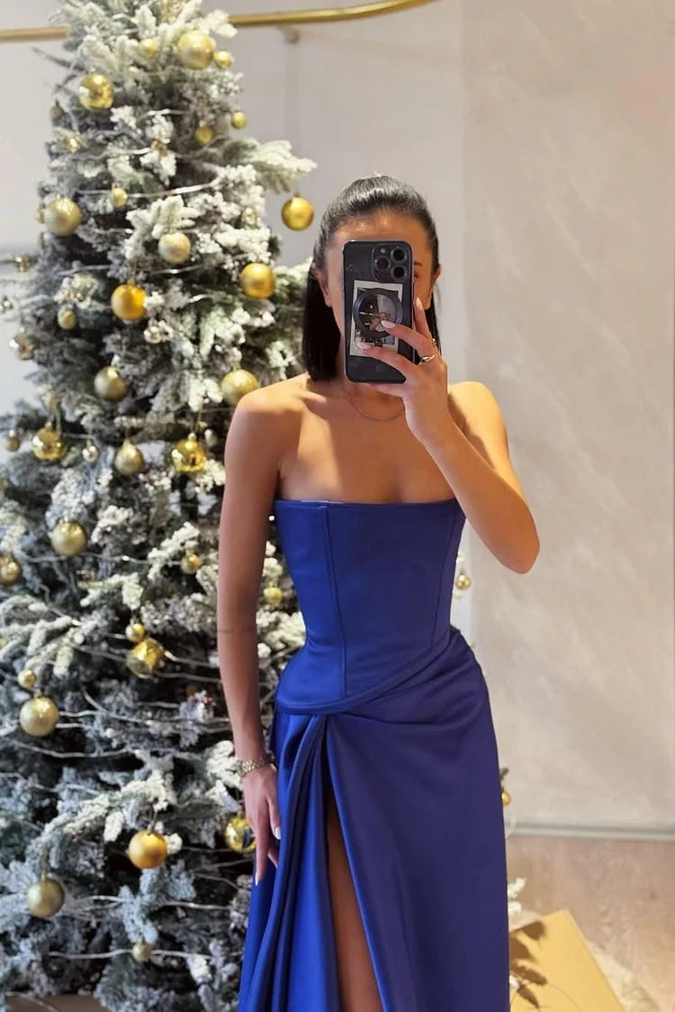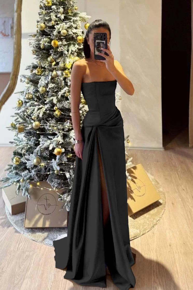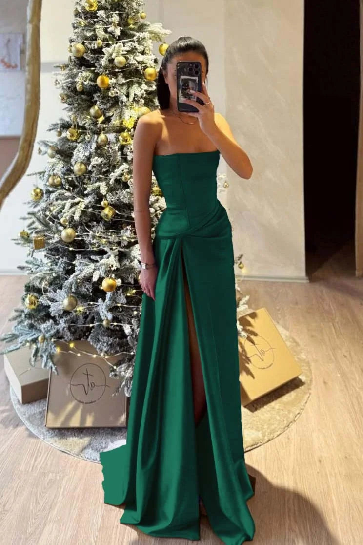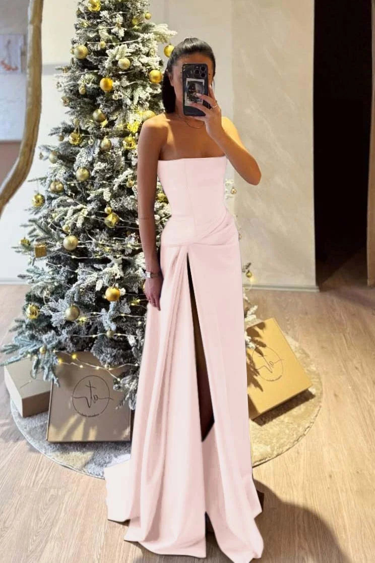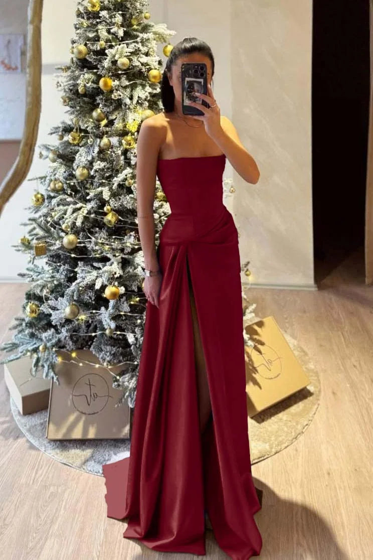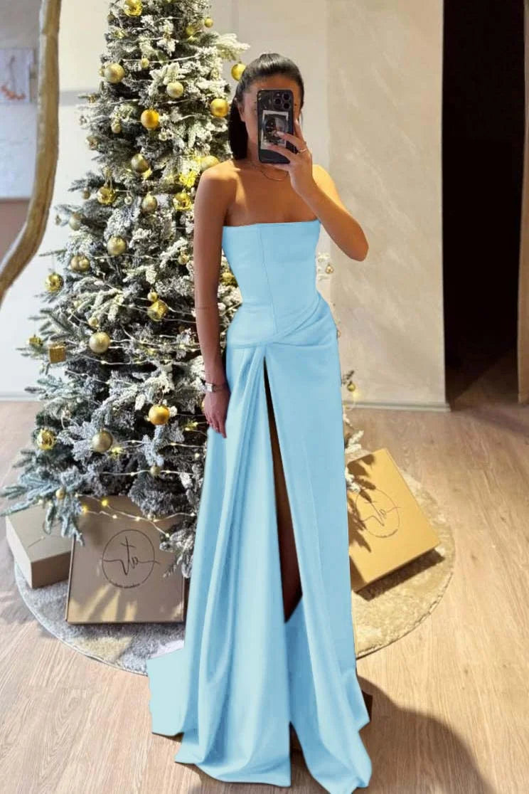 Strapless Sleeveless High Split Long Prom Dress With Pleated