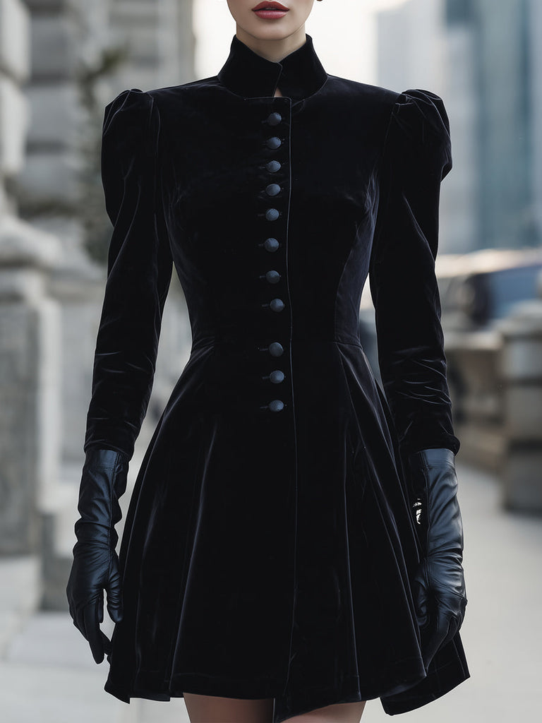 Velvet High-Neck Buttoned Mini Dress