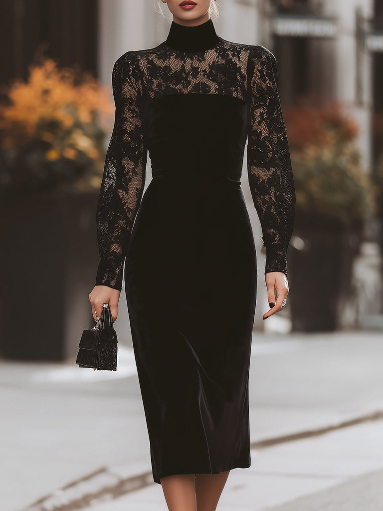 Black Velvet And Lace Midi Dress