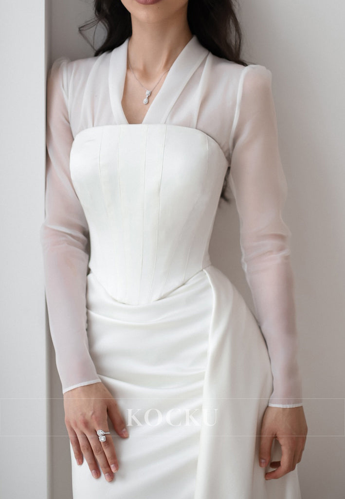 Elegant & Luxurious Long Sleeve V Neck Satin Mermaid Wedding Dresses