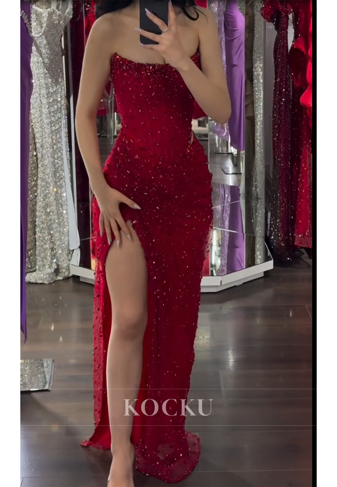 Tube Top Rhinestone Sleeveless Mermaid Prom Dresses with High Split - Red is backordered and will ship as soon as it is back in stock.